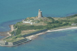 Fort de la Hougue, Fort datant du 17e siècle se situant à Saint-Vaast-la-Hougue (50) dans la région Basse-Normandie. Actuellement propriété de l'Etat. classé aux Monuments Historiques (2015).Les forts de la Hougue et de Tatihou sont un ensemble militaire défensif situé sur la commune de Saint-Vaast-la-Hougue, en France. Il s’agit d’un site majeur de Vauban et de ce fait ils sont inscrits depuis le 7 juillet 2008 sur la liste du Patrimoine mondial de l’UNESCO[1]Wikipedia.org.